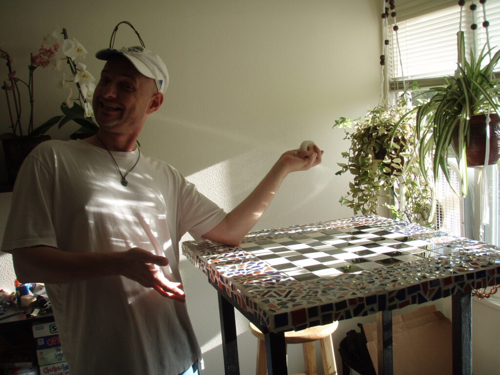While I may not remember the first real game, I started playing between the ages of 4 and 5; my dad always made sure that I was kept busy. We slowly built our collection of games over the years from 2006 to 2014 when he moved to California. One of my best memories was helping him build a table to hold all our games. While I can’t find a full picture of our table, it was similar to this table, however it was all black, with a mosaic top (with a built in chess board) and was about 4×4 ft. I’m not sure if the chess board ever got used but it was still in line with the board game theme regardless. That being said, the table was kind of tall and the seats weren’t the best, so most often than not – especially with games getting bigger and more complicated – we just played on the floor. Even though we didn’t use the table much for playing, it still served its purpose for storing the games in his tiny 1 bedroom apartment.
